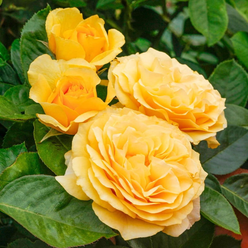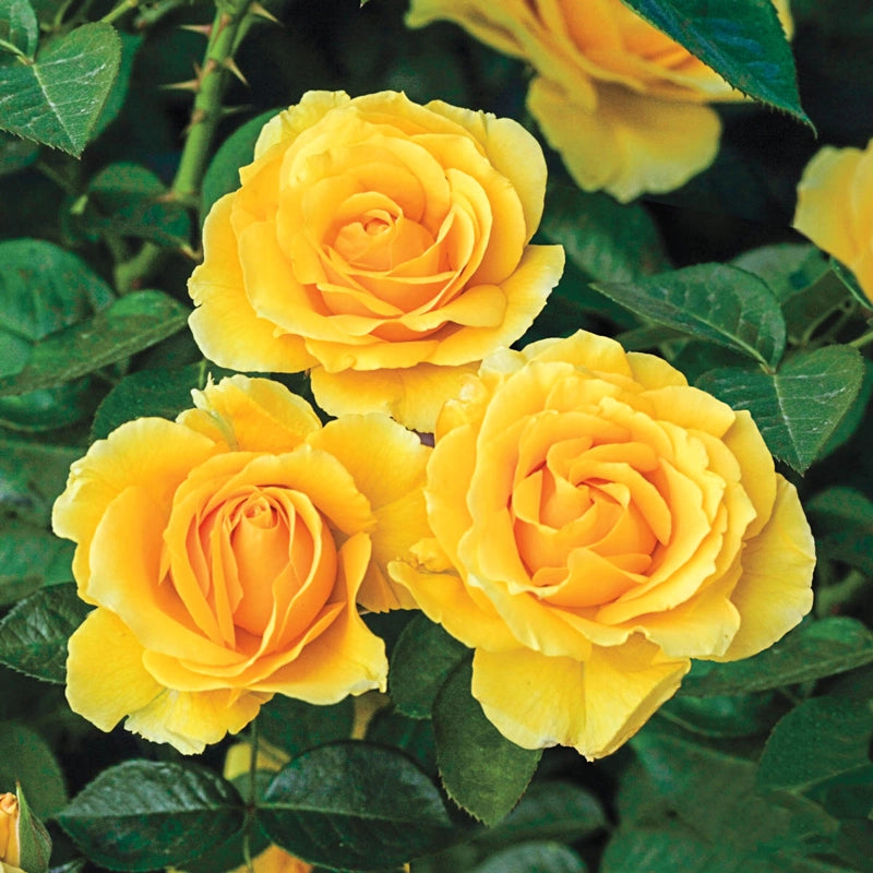 Inspired by big-screen legend and "America's Sweetheart," Doris Day, this lovely yellow rose beautifully personifies the joyful, charming and talented icon. Doris Day Rose will sweeten up your garden with its fruity, spicy aroma. Old-fashioned, ruffled flowers are produced in beautiful rounded clusters on vigorous stems. Exquisite golden colour won't fade, so can enjoy your sunny blooms until the petals drop.