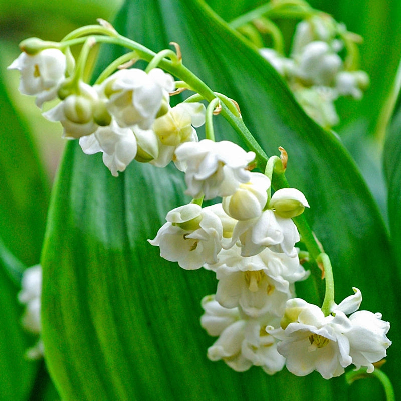 This profusely flowering variety brings a double dose of fragrant beauty to shady spaces in mid spring! Double bells of purest white dangle gently from graceful, arching stems and provide charm and light to oft overlooked corners of the garden. Perfect as a ground cover, in borders or rockeries. A showy naturalizer for woodland areas!