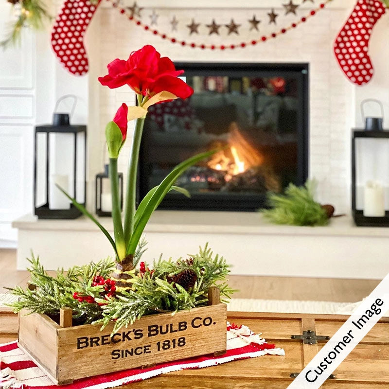 The perfect contrast in colour comes in this marvelous flowering gift from Breck's. Our newest member of the amaryllis lineup, Double King, boasts enormous, 7¾" double blooms of the most eye-catching red hue with occasional streaks of white radiating from the centre. Planted in a pretty pot, it makes an absolutely breathtaking gift for the holidays and beyond. No shrinking violet, Double King bursts onto the scene within 8–10 weeks of planting. Ships as a 26–28 cm bulb.