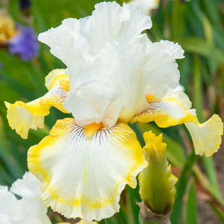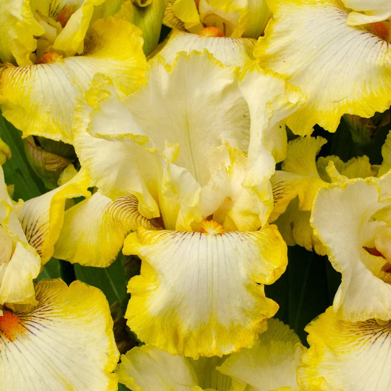 A fragrant award winner with a unique sense of style, this iris stuns with twin borders of yellow and white along sun-coloured falls. Rich burgundy-red veining and tangerine beards add touches f brilliance to an already special bloom. Seldom offered, so be sure to get them while you can. Ideal for borders, mass plantings and bouquets. Perennializes well.