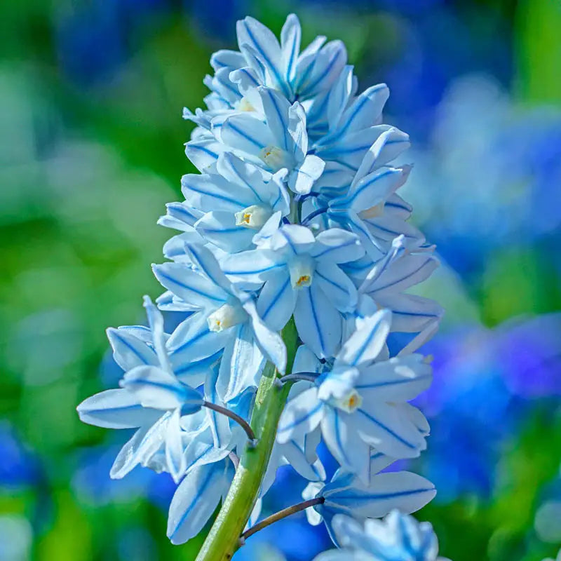 This unique and little-known bulb is made up of pale blue, star-shaped florets that feature deep blue veining and rich buttercream centers.