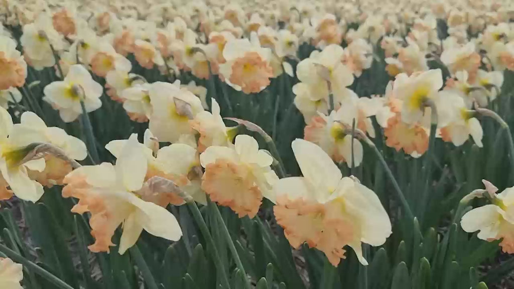 This one's colour, large flower cup and subtle frills make it a standout in any garden. Easter Party enchants with a harmonious blend of pristine white petals and a captivating salmon-pink yellow heart, crafting a marvelous springtime spectacle. With its generous 4" large-cupped flower, this variety promises to be the centrepiece of any garden party, offering a fresh palette for bouquets and naturalized areas alike.