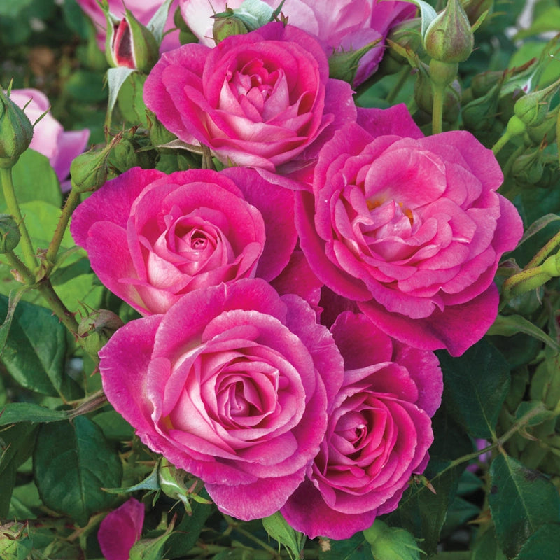 This easy-care, disease-resistant floribunda is sure to please beginners and gardening pros. This high-performing rose produces loads of classically spiraled fuchsia pink flowers with a lighter reverse. The eye-catching flowers have a mild clove fragrance with hints of cinnamon. All of this flower power comes on an upright, vigorous plant that has more disease resistance than many landscape roses. Easy to Please Floribunda Rose is easy to grow, naturally disease resistant, vigorous and floriferous. With just a little watering and fertilizer, you'll have loads of colorful blooms throughout the summer. PPAF