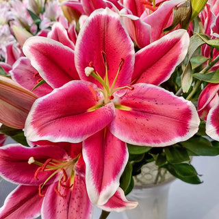 Imagine your garden filled with the majestic stalks of El Capitan, a towering Lily Tree appropriately named for Yosemite's awe-inspiring vertical rock formation. The thick, strong stems bear huge (8" across), pinkish to bluish-red flowers with contrasting white rims and an intoxicating fragrance. By the third year, expect the plants to reach 8' in height and bear up to 10 blooms per stalk!