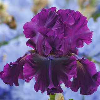 Searching for a bearded iris to add a touch of mystery to your spring garden? Consider this dusky, robust iris. Its wine-purple standards boast wide ruffles, which are even darker in contrast to the falls and complete the flower's swarthy look. Each well-branched stem produces up to eight buds, providing a bounty of darkly desirable blooms each year. The original hybridizer of this iris named it after his wife, adding a personal touch to its already impressive features.
