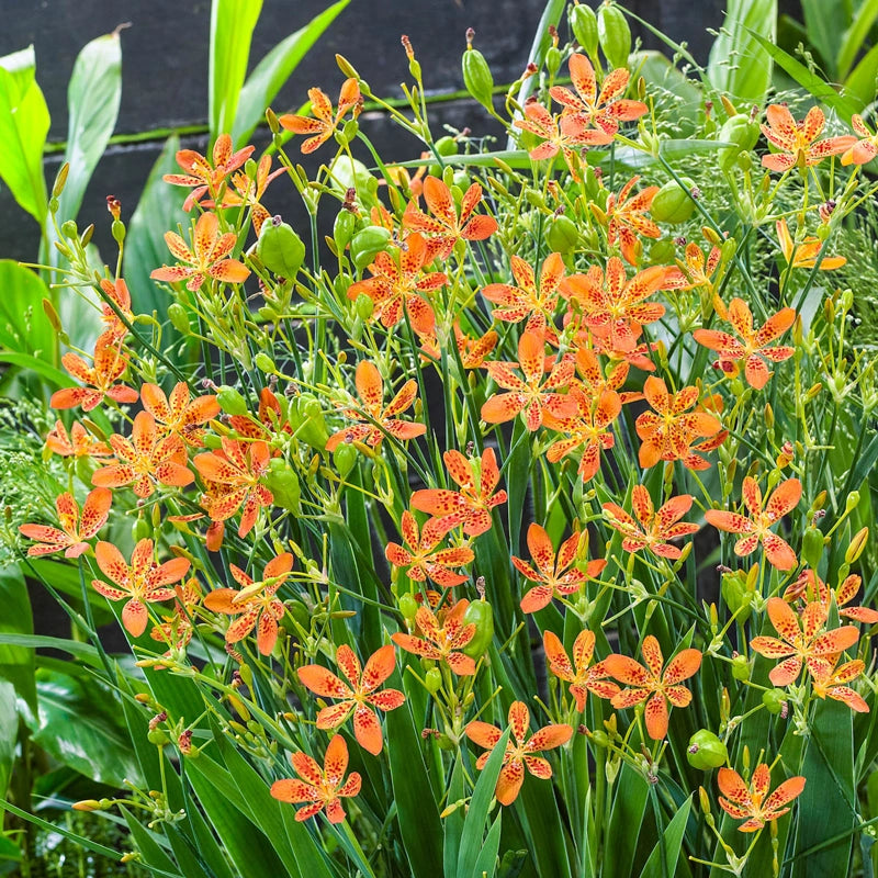 Set your full-sun borders and beds alight with fiery colour and sizzling interest. Abundant, star-shaped blooms cover compact plants in late summer, giving the entire area a blazing palette of yellow-orange to red. The petite, spotted flowers make way for seedpods in autumn.