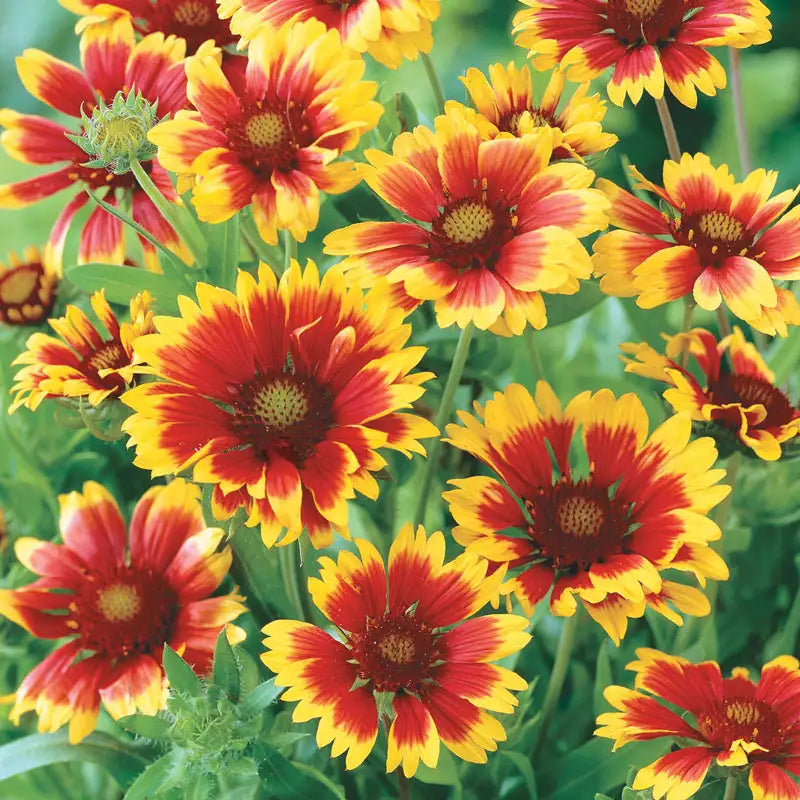 Daisylike flowers are sure to stand out in your sunny borders and planters. Blooms have cherry-red petals with serrated, sun-yellow tips surrounding a mahogany centre. Resistant to heat, humidity and drought, these flowers are as hardy as they are flamboyant. Fill your vases with gorgeous cut flowers all season long. Creates low mounds of olive-green foliage. Loved by butterflies, avoided by deer.