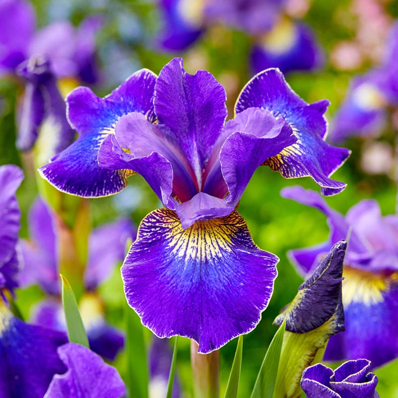 Ruffled falls of deep velvety violet blue traced with a crisp yellow wire edge and rich golden signal give this award-winning iris its striking look. The falls are paired with contrasting medium violet-blue standards.