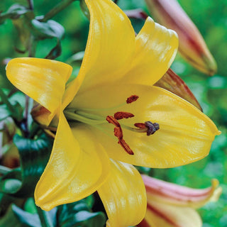 More drought tolerant than most lilies, this brilliant specimen boasts large, outward-facing blooms of golden yellow with maroon stripes on their underside. Each sturdy, upright stem carries 12–20 flowers measuring 6–10" wide! Award-winning Golden Splendor emits a pleasing fragrance that lures pollinators of many types.Trumpet lily