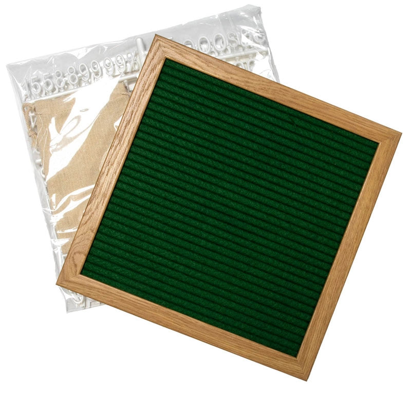 An ideal addition to your décor this season, our customizable letter board lets you leave messages for friends and family, wish everyone Happy Holidays or welcome guests to your home. Sturdy, wood-framed board features rich green felt lining that securely holds letters in place. Includes a set of white plastic letters and numbers, as well as a handy bag to keep everything together. Makes a great gift for students from pre-school through college. (10"h, 10"w, ¾"d)