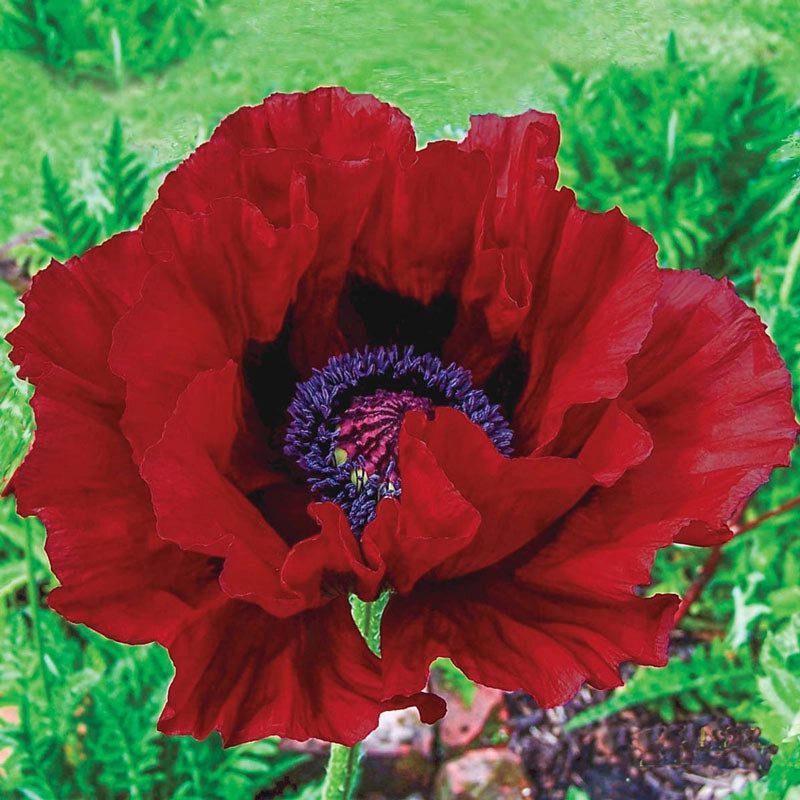 Thick, sturdy petals of deep maroon-purple gracefully overlap to create a large, 5½–7½" semi-double bloom like no other. Easy-to-grow showstopper produces up to 12 blooms per plant, and a second round of blooms is common in cool summer regions. Pollinators love them, but rabbits won’t bother.
