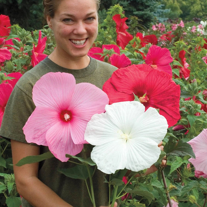 These hibiscus will produce huge, exotic-looking blooms measuring 8–10" across! Includes a mix of red, white and pink flowers with large, rounded, overlapping petals. Plant several together to form a gorgeous flowering hedge! While new shoots are sl