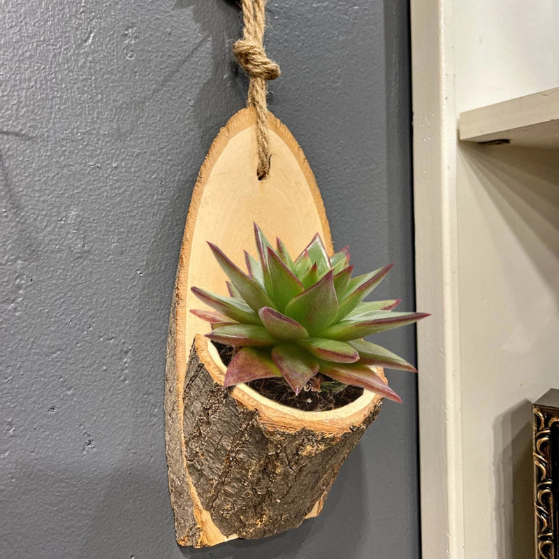 What a beautiful way to enjoy the outdoors, even during the coldest days of winter! This pair of basswood planters is perfect for showing off small houseplants or colorful ornaments, air plants or greenery during the holiday season. Roughly hewn to show off their natural beauty, each planter is unique and makes an excellent gift or home décor piece. Pre-drilled and strung with rustic twine for quick and easy hanging. EXCLUSIVE (Oblong: 8¼"h, 4"w,4"d; Round: 4"d,6½" dia.)