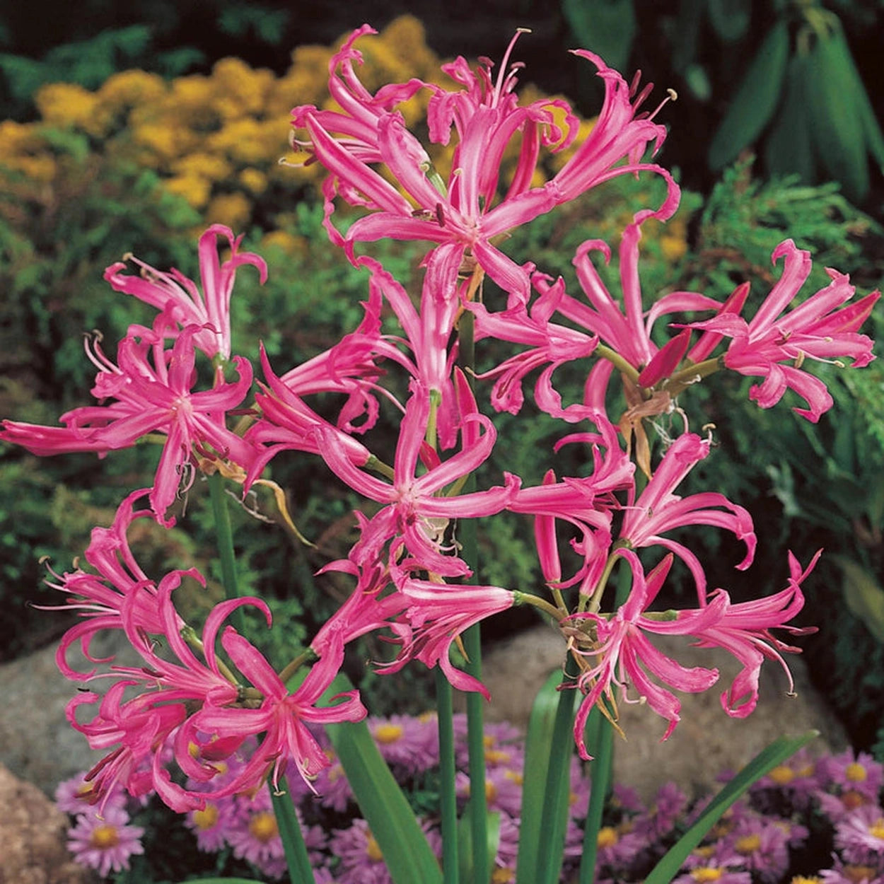 This breathtaking variety presents clusters of rose-pink blooms with iridescent, recurved petals and naked stems. Linear leaves appear after the funnel-shaped flowers are spent in early fall. Excellent for jazzing up the front border or cutting garden on a dull fall day.