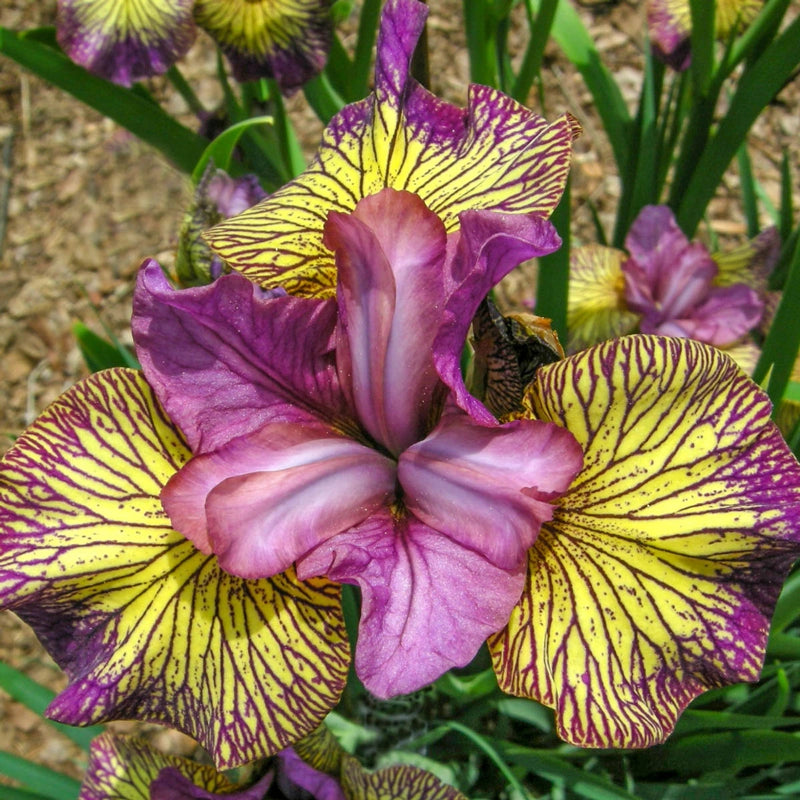 Bold colour and reliable performance make this carefree award winner a standout for moist sites and pond margins. Early summer brings striking red-violet standards with blueribbed, pink-tipped style arms, backed by yellow falls richly veined in red-violet with a bright yellow signal. Growing to about 28" tall on sturdy stems, it thrives in moist, well-drained soil and draws pollinators with ease.