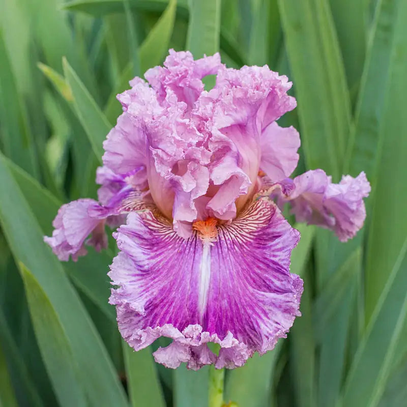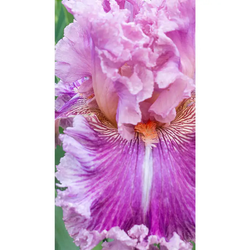 Flounces, ruffles and lacing galore adorn this bearded beauty. Blooms of orchid pink boast accents of champagne pink and rose-magenta with tangerine beards. Boasts a heady, sweet fragrance.