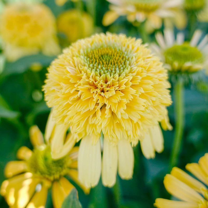 Lemon Drop is a vigorous, reliable bloomer that produces luxuriant displays of sunny yellow, double-button flowers from midsummer to early fall. Part of the Cone-fections series from renowned Dutch hybridizer Arie Blom, this coneflower’s strong, straight, upright stems help make it an excellent choice for fresh-cut arrangements. Pair up Lemon Drop with purples and pinks to give your garden a cool effect, or combine it with oranges and reds to heat things up in the landscape.
