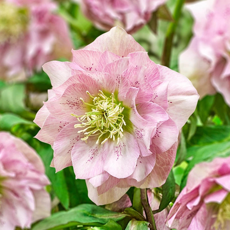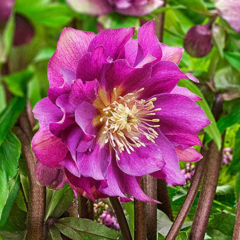 - Blooms measure 4" across—up to twice the size of traditional hellebores.