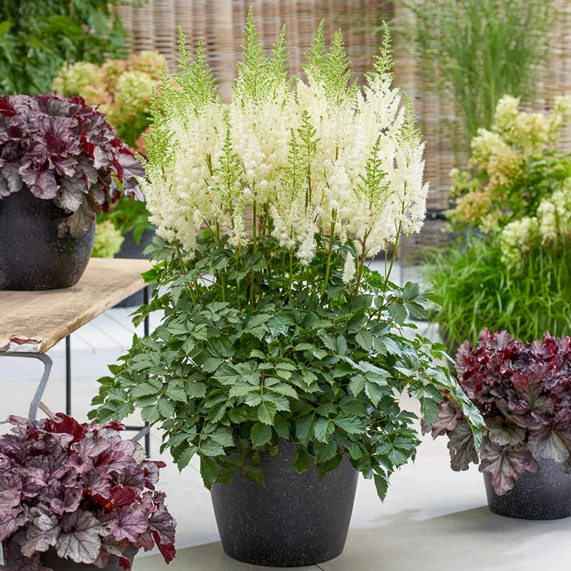 This early blooming shade perennial features full, creamy white plumes brushed with pale green, held above a tidy mound of finely divided dark foliage. It thrives in moisture-retentive soil and partial shade but shows impressive tolerance for heat and dry spells once established. Excellent planted in drifts to brighten up shady beds or borders, and just as appealing in a vase—fresh or dried.