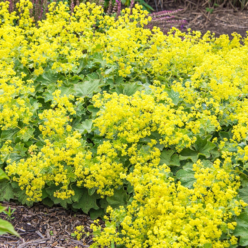 Truly, no garden is complete without Lady’s Mantle. The name alludes to the fanlike shape of this plant’s light green foliage. A cottage garden classic, it produces masses of tiny, greenish yellow blooms that erupt from fan-shaped foliage. Extremely drought tolerant and an excellent cover plant, it will thrive in sun or shade; a wonderful companion for roses. Long lasting as cut flowers, as well.