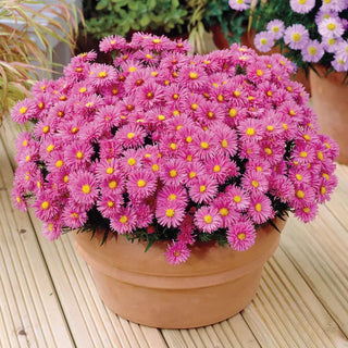 Bring a soft blush of colour to your late-summer garden with this charming dwarf aster’s daisylike blooms. Marjorie completely covers its compact habit with a slew of the pale pink, 1½" flowers. Use it as a cheerful ground cover, nestled along garden pathways or featured in mixed containers. This daisy aster proves particularly fetching when grouped in drifts, where its bubblegum-pink petals create a welcoming sea of colour.