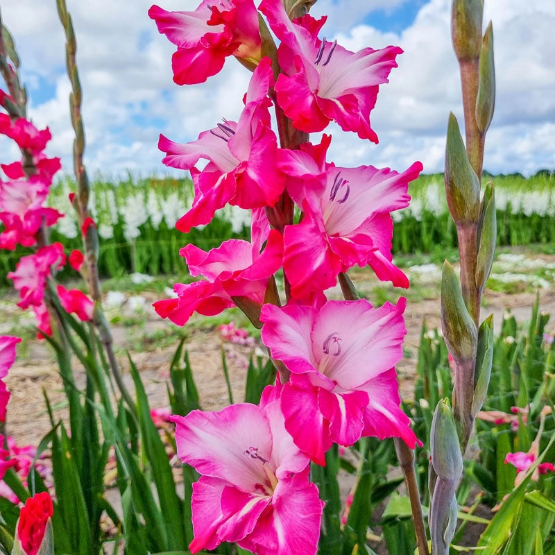 Welcome these early-flowering, award-winning glads with open arms and enjoy their striking combination of bubblegum-pink and white. Milkshake is a robust variety with an extended flowering period. The blooms are lovely in arrangements, and are a favourite of butterflies and pollinators, and perfect for cut-flower enthusiasts.