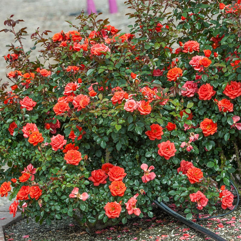The buzz next season will be all about this vividly coloured, exceptionally vigorous miniature rose. Classically shaped buds spiral open to perfectly formed, fully double blooms of a bright, show-stopping shade of orange. The robust, disease-resistant plants are compact, and will create a dense carpet of colour when planted en mass, or use them as an eye-catching low border. Fill containers for non-stop colour on porches, patios and decks, where their dainty details can be admired up close.