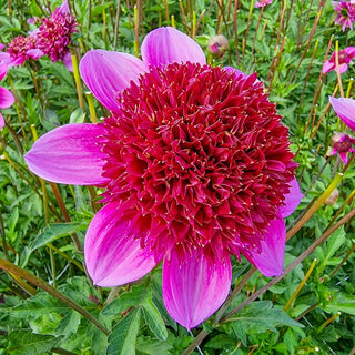 Offer nearby pollinators a midsummer repast with Missis Abigail. This anemone-type dahlia is a treat for butterflies and bees, sporting 3½" blooms in a blend of blush pink, purple and golden hues. The large, fluffy centres are a hallmark of the powder-puff dahlias and serve as a charming addition to fresh arrangements, as well as winsome border displays.