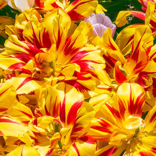 Garden impact is assured when these canaryyellow blooms open to show off their dark red painterly streaks to the fullest. Each bulb produces about three striking blooms that measure up to an amazing 6" across. Long lasting in the garden or vase. They can even be forced indoors for an early breath of spring.