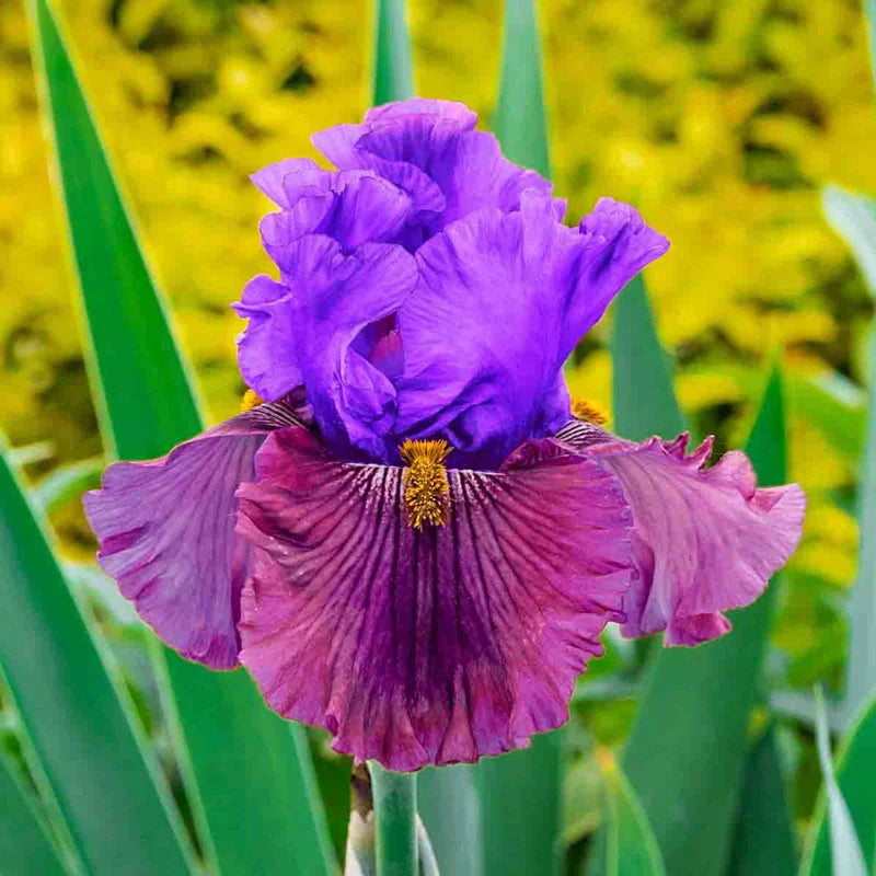 This beautiful bicolour is named after a former director of the Tuileries Garden at the Louvre. It flounces onto the scene with nearly horizontal, amaranth falls and are highlighted with borders that turn to light pink-copper. Blooms also feature lavender-violet standards and bronze-hued beards. All petals are spiffily curled and ruffled, giving the impression that Nelly Tardivier is ready for a glamorous evening out on the town!