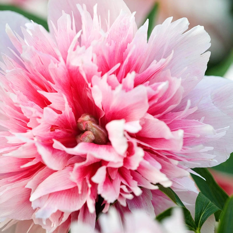 A fixture in American gardens since the 1700s, this heirloom variety was ultivated in European medicinal gardens at least a century before that. Sturdy and healthy with a compact habit, this peony flowers profusely, once drawing bounteous pollinators to the landscape. Its bright pink, double blooms feature large guard petals and slender, notched inner petals that lighten with age. Recipient of the RHS Award of Garden Merit. Late midseason flowering.Paeonia officinalis
