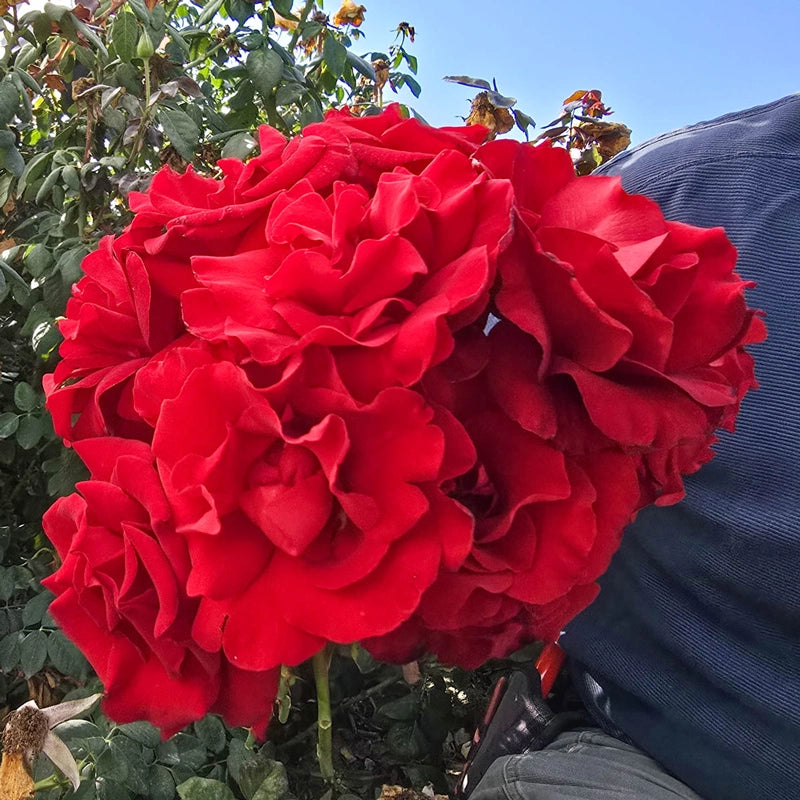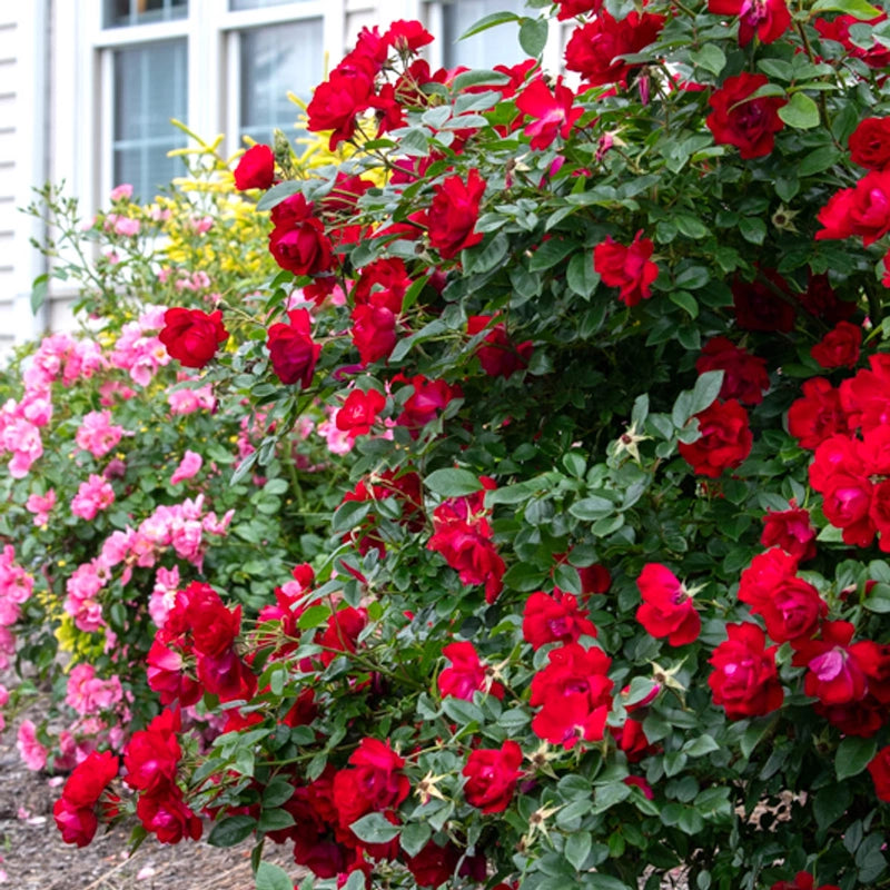 Floribunda Rose produces large clusters of double, ruffled red flowers against glossy dark green foliage. Its mild apple fragrance just adds to the impressive visual display. With its rounded form and upright habit, this floribunda can be planted as a hedge. It's one of best red floribundas we've found. With its classic red flowers and good disease resistance, Oh My makes an outstanding landscape rose. PP24728