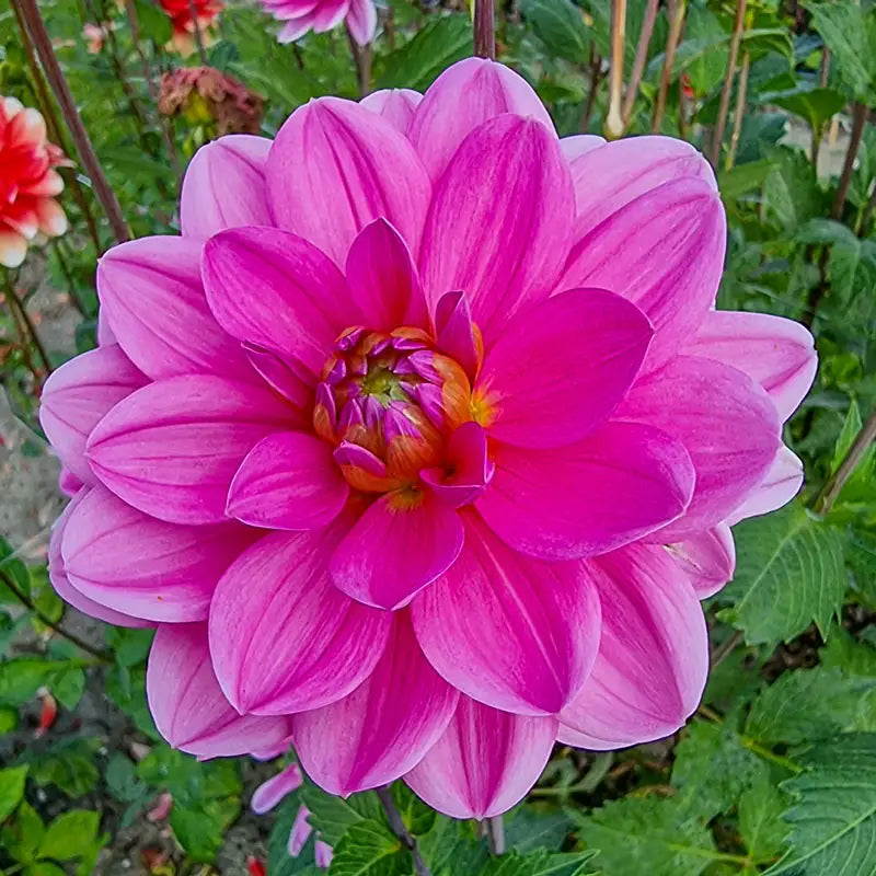 A great garden variety and one of the finest dahlias for cutting, its water lily-style flowers measure 4" wide and are hued a vivid bubblegum pink. The plant’s diminutive size makes it perfect for containers, borders or edging.