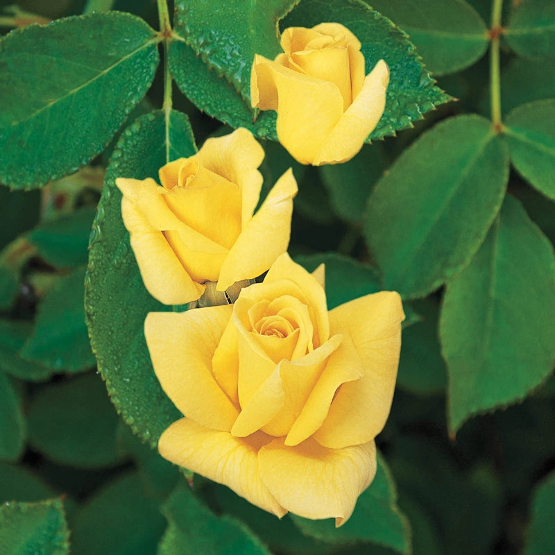 This celebrated rose produces immense 6", high centred double blooms of luminous golden yellow, each with about 35 petals and a mild fruity scent. A 1975 AARS winner, Oregold is admired for its strong vigour, glossy green foliage, and reliable disease resistance. Growing up to 6' tall, this repeat bloomer makes a striking statement in beds, borders and cutting gardens, offering radiant colour and enduring elegance season after season.