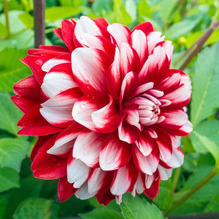 We love this new dahlia for myriad reasons, not the least of which is its amazing colouration and how it pops in the landscape. Fiery red outer petals encircle layers of white inner petals that merge with red toward the centre. Full and fluffy double blooms are spectacular when displayed in groups, either in the garden or a decorative vase indoors. Like all dahlias, it is easy to grow and very showy. Butterflies love the red hue and will visit daily.