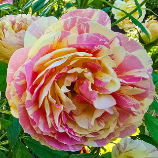 Unlike most striped roses, which typically feature red blooms with light yellow striping, the flowers of this spectacular variety are pastel pink with stripes that are deeper yellow. As a non-clustering grandiflora, its lush flowers grow one to a stem, not together in bunches. These blooms reach 4–4½" in diameter, and each is packed with an incredible 60–75 petals! PPAF