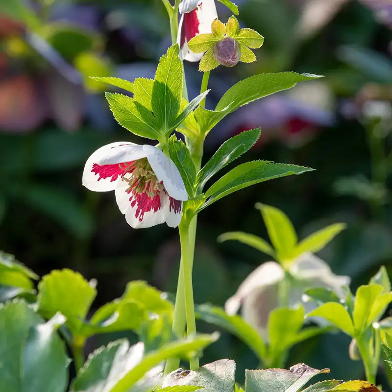 With dramatic, single wine-red flowers edged in white, Romantic Getaway brings elegance and early colour to any shaded area. Opening its 3" blooms for six weeks or more beginning in late winter, it’s a standout for woodland gardens, borders, containers or as a ground cover in naturalized areas. This hellebore’s evergreen foliage keeps your space lively year-round, and it’s deer resistant, drought tolerant and easy to grow. Attracting butterflies and other pollinators, it adds beauty to garden beds and arrangements alike.
