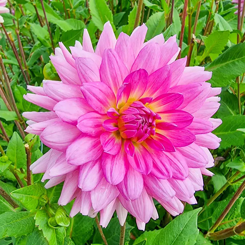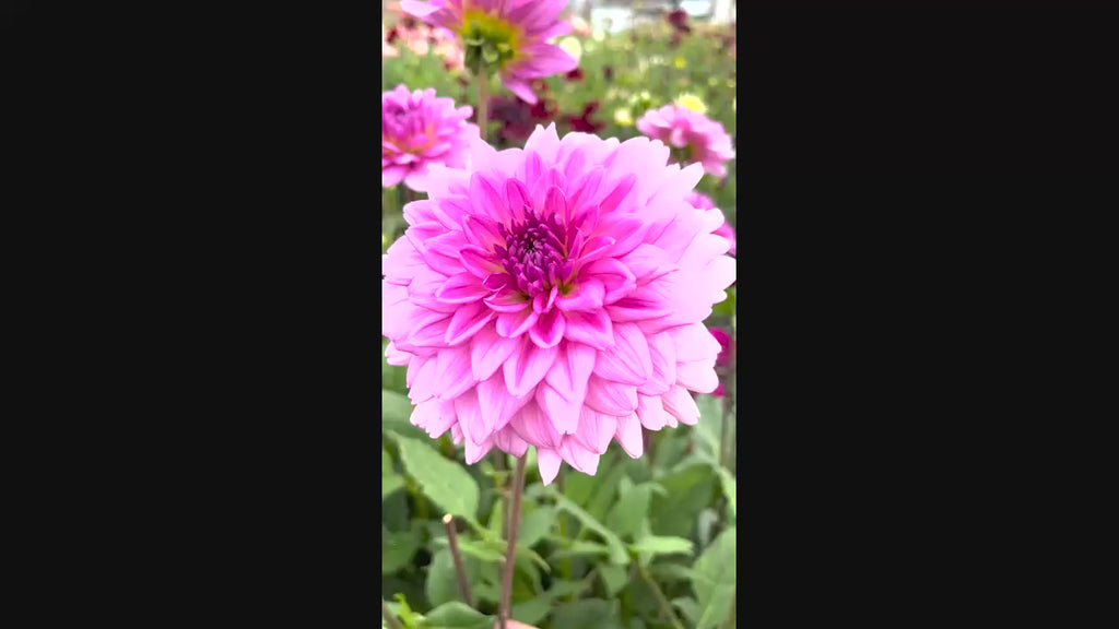 Sturdy, 44" stems carry this dinnerplate dahlia's dramatic blooms from midsummer to fall's first frost. The 10" fully double flowers are a perfect lilac-pink blend that is unmatched in the garden. Also looks spectacular in a sunny border, patio pot or cut flower arrangement. Sure to be noticed by neighbours and passersby.