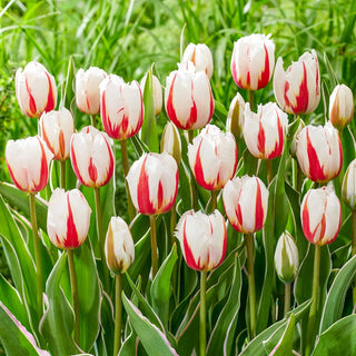 Salsa features delicate white blooms with heavily fringed petals, fiery red flames and a touch of yellow at the base. The overall look is lively and fun. Sure to become a favourite for cut-flower arrangements. Variegated foliage makes it an excellent garden tulip.