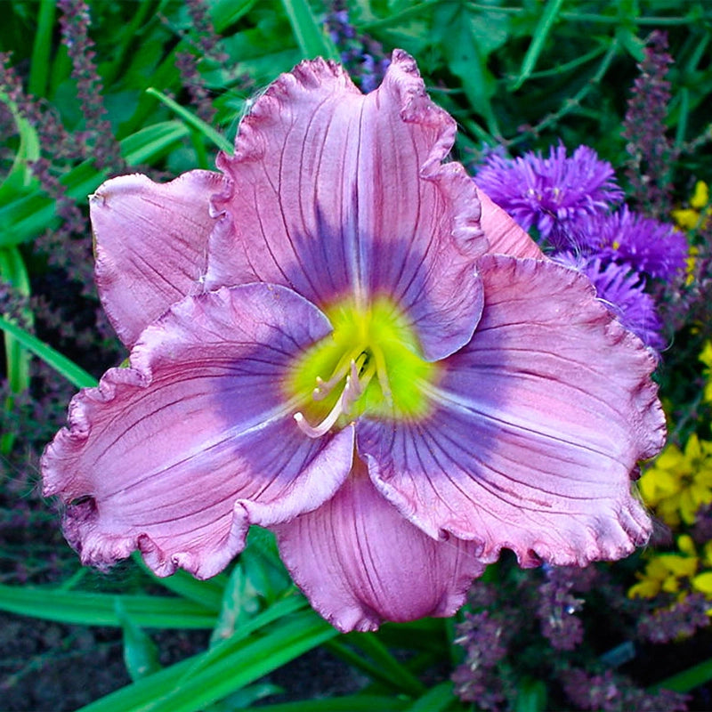 This elegant beauty adds a touch of class wherever it grows. Its 3½" bloom shows a soft orchard-pink hue, highlighted by a purple eye zone and a green throat. An extended flowering period keeps the display going longer. Plant it in a window box to perfume a room. Foliage goes dormant in winter.