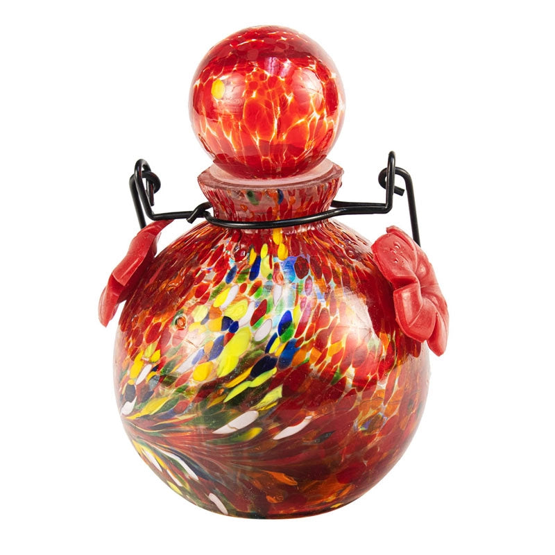 A unique shape and brilliant red hue bring loads of peckish hummers to the landscape. One of the newest feeders to be added to our lineup, this handblown glass version features a one-of-a-kind design that adds sophistication to any garden or outdoor space, as well as a solar panel that gathers the sun's energy during the day, illuminating the area by night. An easy-fill top makes keeping the littlest backyard birds fed a breeze. A great gift for discerning friends or family that appreciate the unique and different. (6"h, 4¼" dia.)