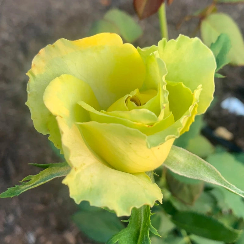 A distinctive rose with remarkable staying power, this award-winning beauty produces huge 5" double blooms, each with 30–35 petals in shades of yellow brushed with chartreuse. Its colour deepens to gold in cooler weather, creating a striking contrast against grey-green foliage. Each flower opens slowly, revealing elegant form and a light, pleasant fragrance. A dependable rebloomer with long, sturdy stems perfect for cutting.