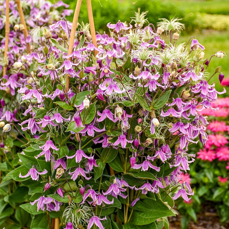 This herbaceous perennial emerges annually from the ground, producing abundant flowers. Cream-colored seed heads follow the blooms. Its broad green foliage benefits from support, either through staking or neighboring plants.