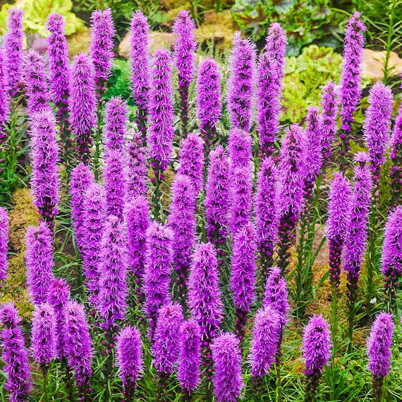 Use Blazing Star's unique texture to bring dimension to your mixed border—it’s a great companion plant. The 12–15" vertical spikes bloom from the top downward, giving you 3–4 weeks of rosy purple colour at the height of summer. The distinctive, bottlebrush-style stalks are also a wonderful addition to bouquets.
