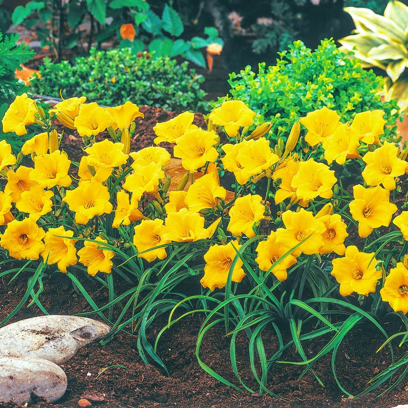 This award-winning dwarf daylily is a true garden star thanks to its steady succession of bell-shaped, golden flowers and long blooming period.