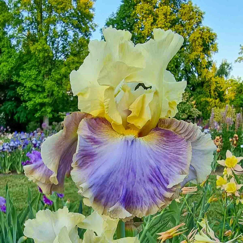 A vigorous variety that's sure to turn heads! Lemon-cream standards top falls of lavender-violet blended with a soft brown overlay. Shades of deeper brown at the hafts provide added dimension and give the flower a lovely sense of style. Prolific flowering lets you enjoy cut flowers indoors, and natural displays outdoors.