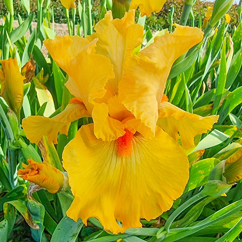 Another Breck’s exclusive from our own breeding program, this wellbranched iris delivers large, 5" blooms in striking cadmium orange,set off by bold, deep orange beards. Not officially a rebloomer, but it has surprised us with late-summer blooms in our trial fields.