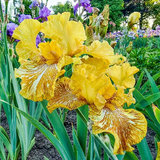 This robust, well-branched flower brings a burst of unconventional beauty, boasting butterscotch tones intermingled with whimsical streaks of golden yellow. Its falls display an extraordinary palette of mustard yellow, tan and white, each petal lightly laced and ruffled for a touch of elegance. Not just a visual masterpiece, Tiger Honey also exudes a subtle fragrance to complete the sensory experience.