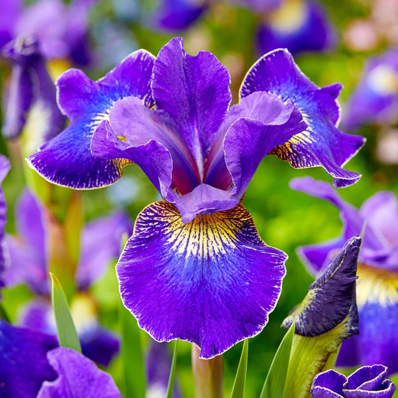 Golden Edge Siberian Iris: Ruffled falls of deep velvety violet blue traced with a crisp yellow wire edge and rich golden signal give this award-winning iris its striking look. The falls are paired with contrasting medium violet-blue standards.