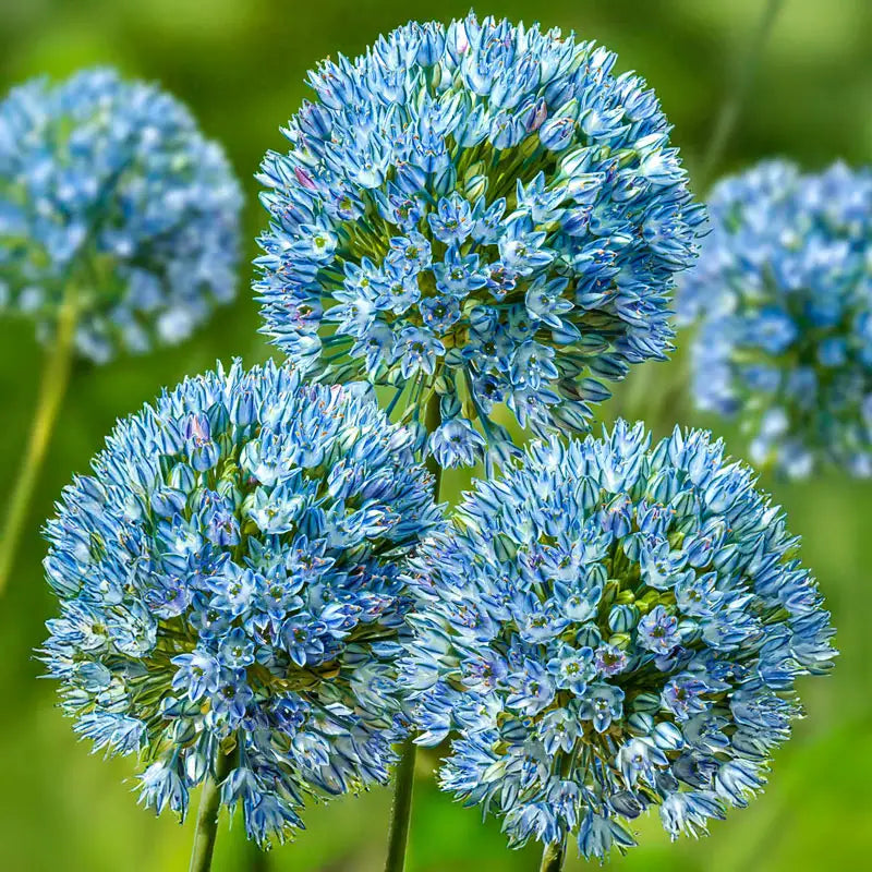 If you've been searching for an unusual flower to grace your landscape, you've found it in Zamin Allium! Widely regarded as the loveliest blue on the market, Zamin sports full, 4" globes of soft sky blue with darker midribs. Perfect for borders, rockeries and fresh or dried arrangements. Deer and pest resistant; rarely affected by disease. Pollinators love alliums! Cannot be shipped to ID, WA.